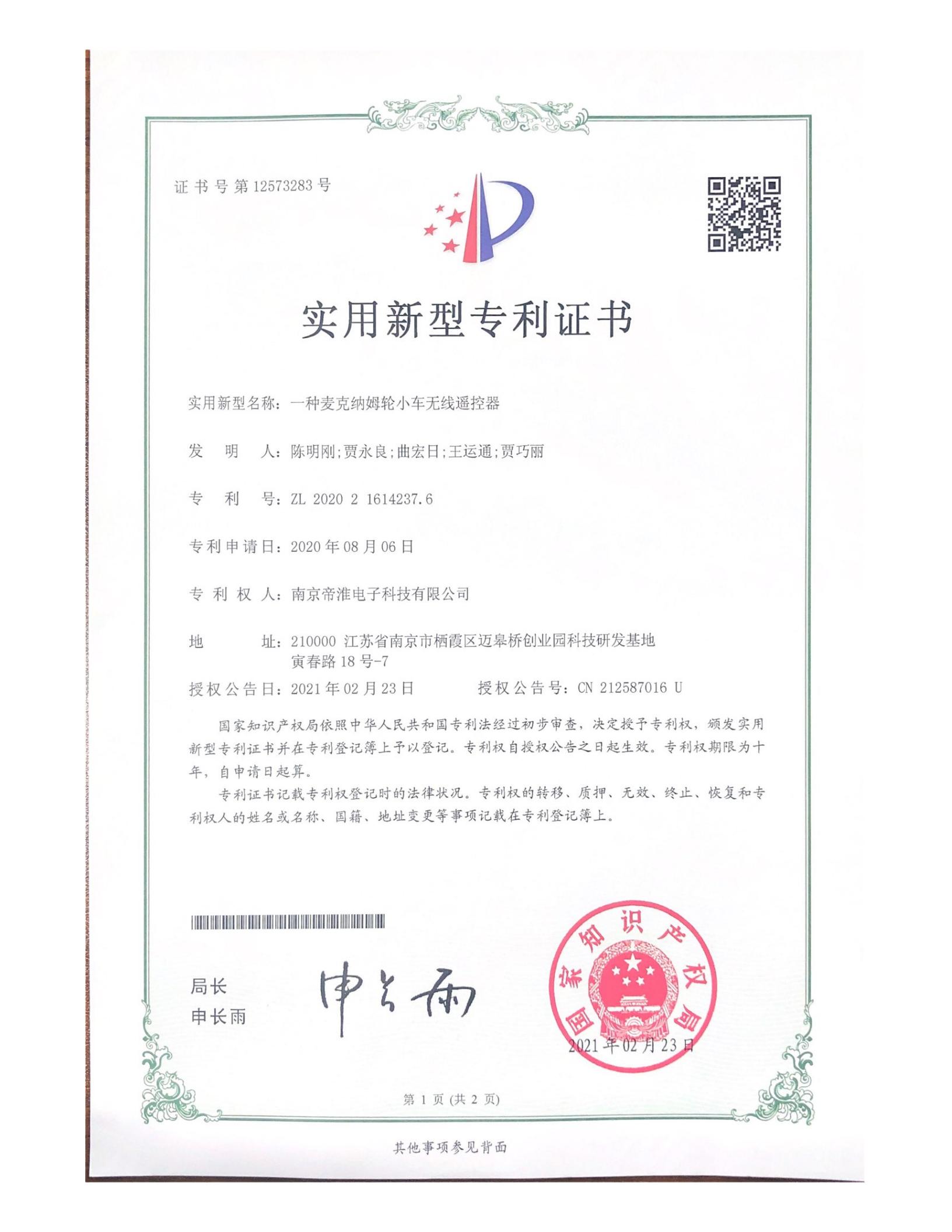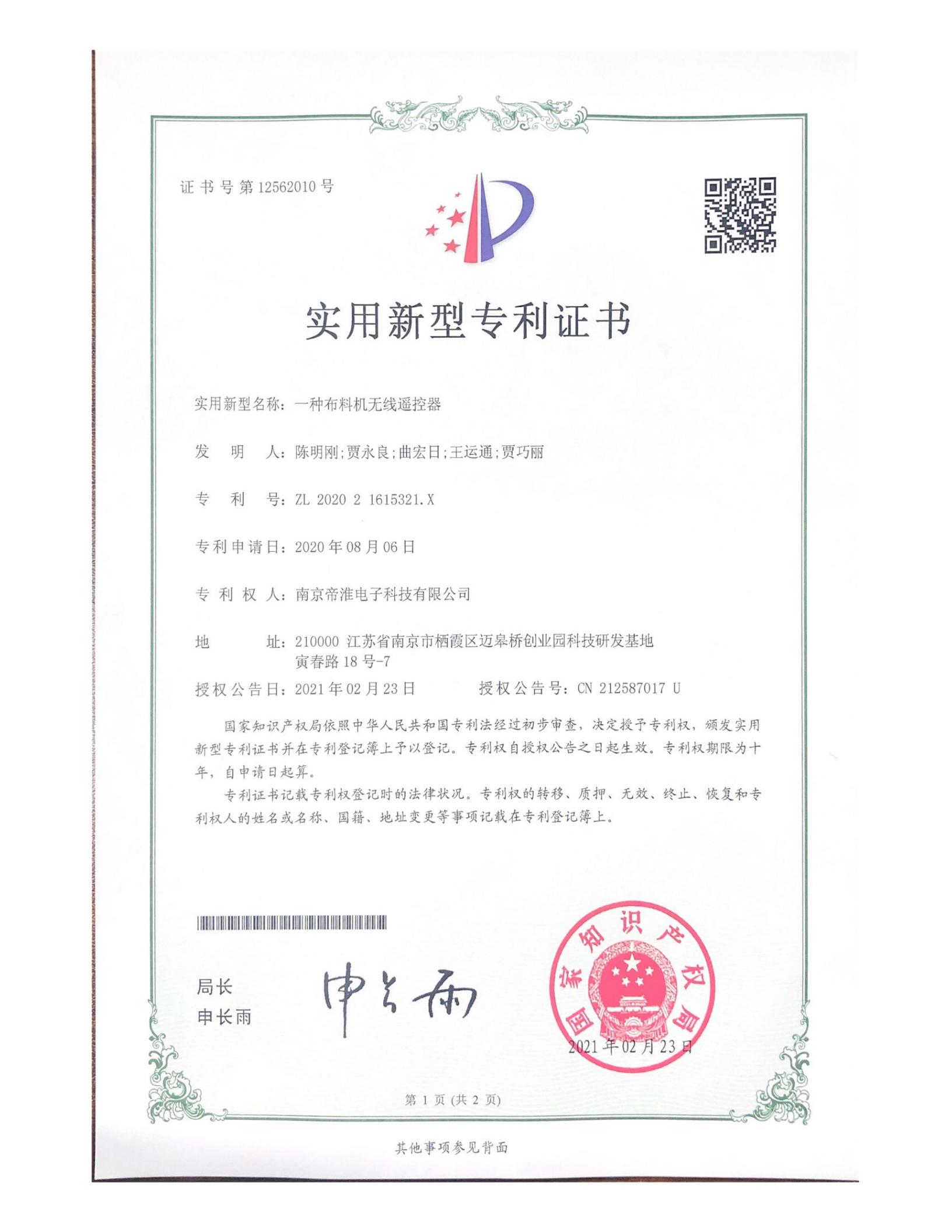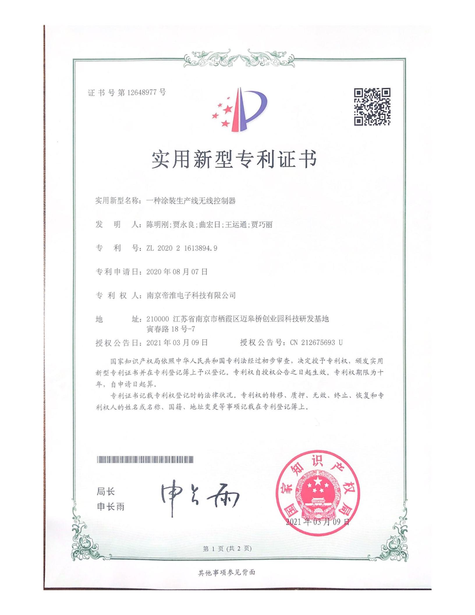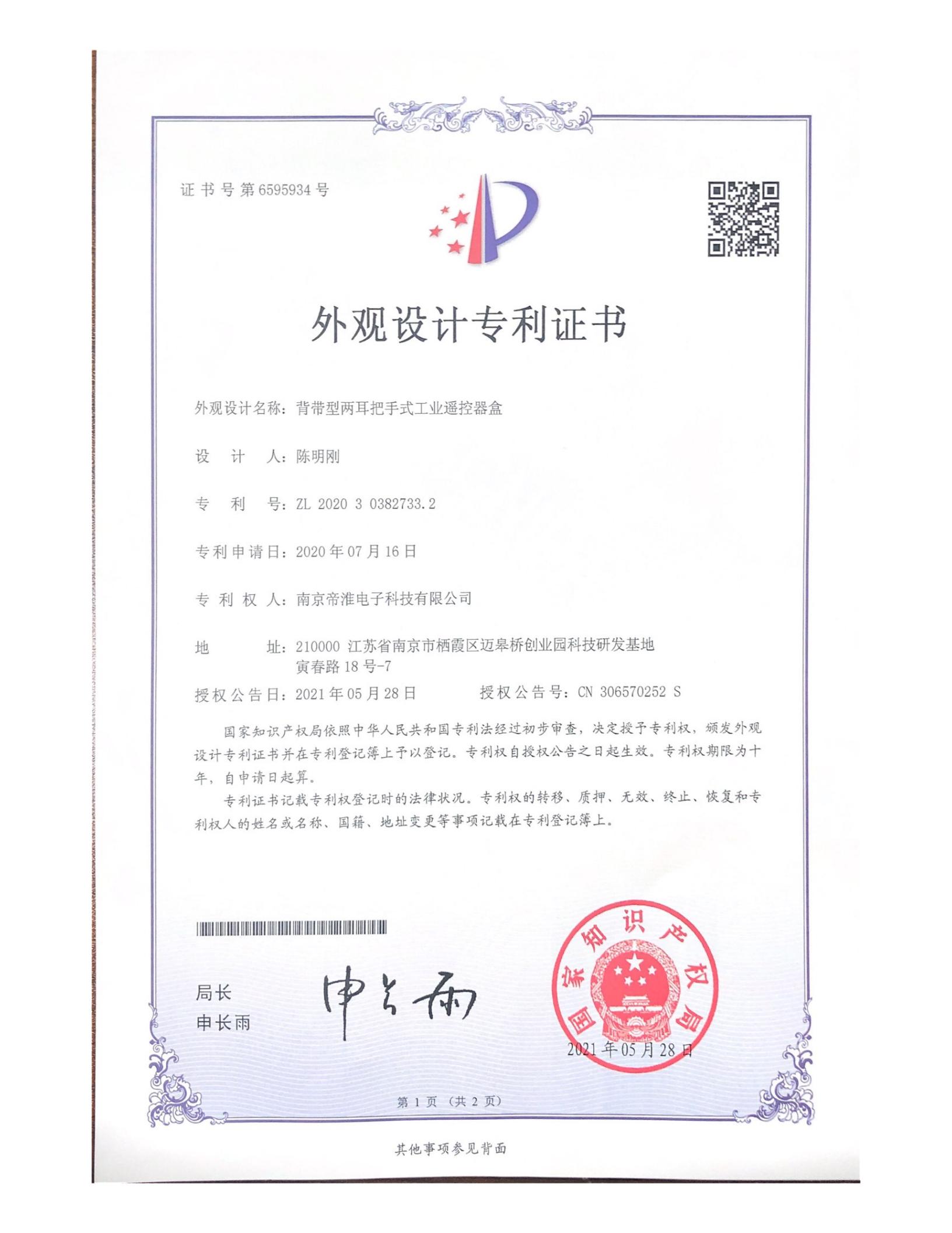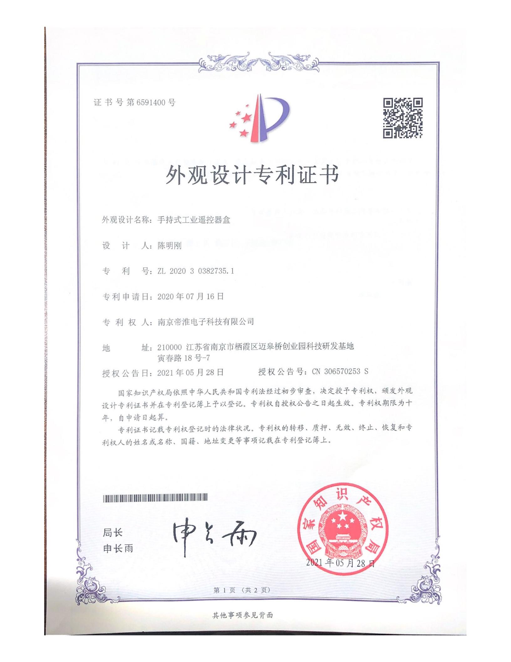 南京帝淮电子科技有限公司,国内工业??仄餍幸盗炀笠?,自主研发、定制、非标设计各类工业级无线遥控器、工业级有线控制器、智能化自主算法逻辑的本地控制器等系列产品。已经申请及正在申请的技术专利、外观专利有近三十项左右,并通过了CE欧盟认证、国家级试验检验报告、EMC电磁兼容认证等。